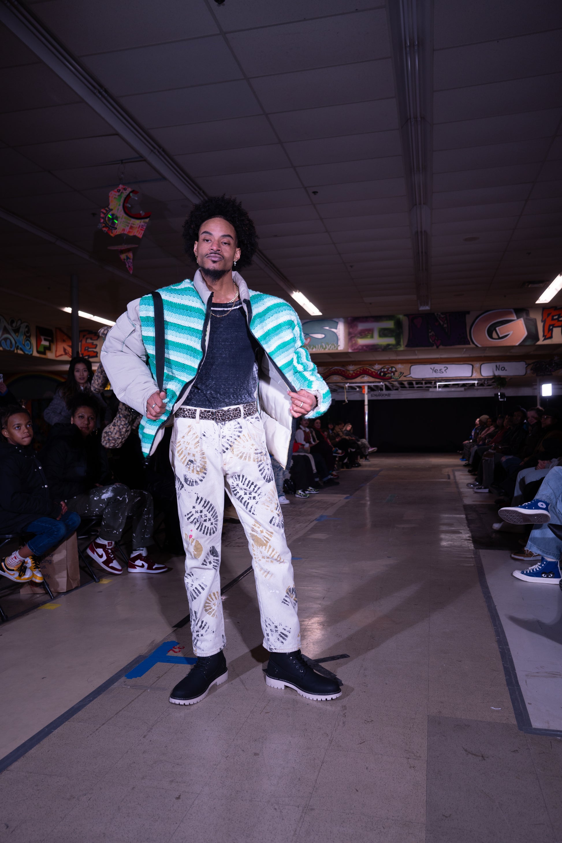 Stomp jeans 34x33. White denim gold and black print